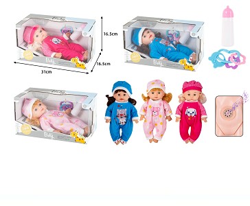 | YT24102334 | 30CM实身搪胶活眼公仔仿真娃娃配IC,奶瓶,奶嘴 | 48