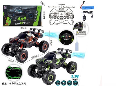| 货号 | 品名 | 装箱数量 | 证书 |  | YT24090306 | 1:14六通带气雾攀爬车绚丽灯光PVC壳(包电)2.4G | 24