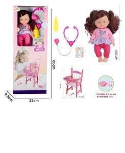 12寸吹瓶定眼喝水女娃娃配喝水奶瓶、纸巾盒、听筒、餐盘、餐椅、没带IC