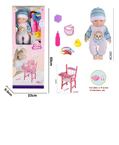 12寸吹瓶定眼喝水男娃娃配喝水奶瓶、骰子、围巾、鸭子、套环、餐盘、餐椅、没带IC