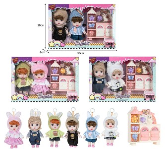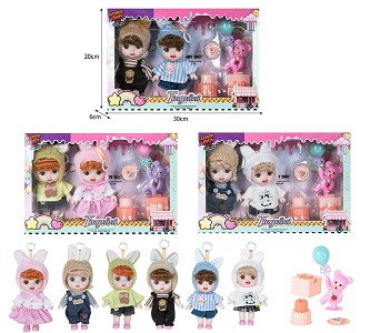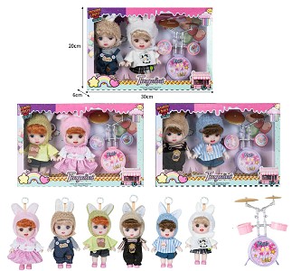 | YT251210161 | 7寸全身搪胶3D眼时尚萌娃娃带配件(2只装) | 88