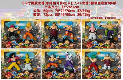 | YT24101453 | 8-9寸搪胶龙珠(手脚腰可转动)公仔2只+龙珠5颗带底座 盒装6款 | 60