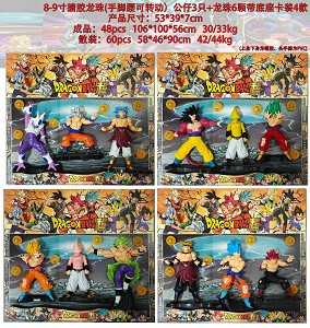 | YT24101454 | 8-9寸搪胶龙珠(手脚腰可转动)公仔3只+龙珠6颗带底座 卡装4款 | 48