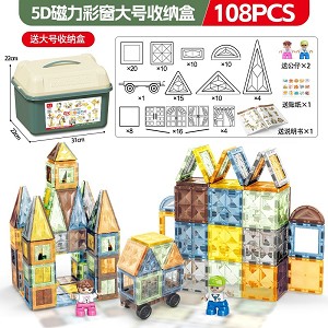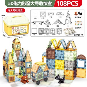 | YT24092126 | 5D钻面磁力片108片+1车 【大号收纳桶】 +送2动物+送贴纸+说明书 | 12