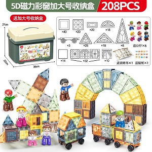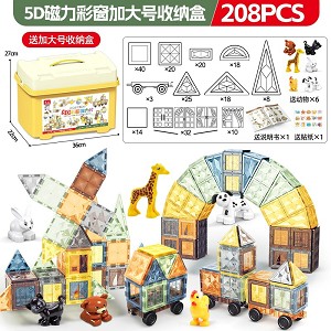 | YT24092128 | 5D钻面磁力片208片+3车【加大号收纳桶】+送6动物+送贴纸+说明书 | 8