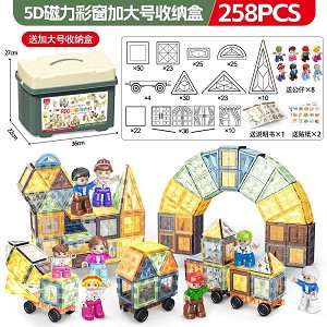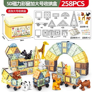 | YT24092129 | 5D钻面磁力片258片+4车【加大号收纳桶】+送8动物+送贴纸+说明书 | 8