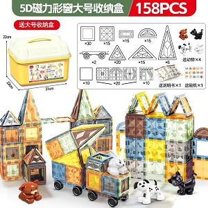 | YT24092127 | 5D钻面磁力片158片+2车 【大号收纳桶】 +送4动物+送贴纸+说明书 | 12