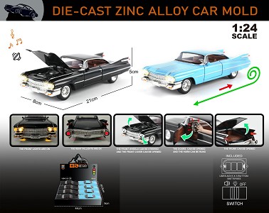 | YT24094126 | 英文1:24回力压铸锌合金灯光音效凯迪拉克-大火箭车模 | 48
