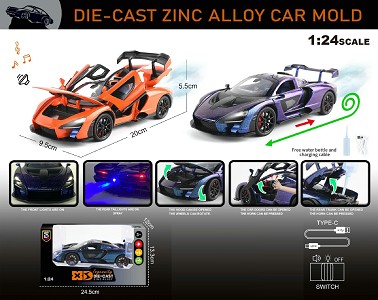 | YT24094128 | 英文1:24回力压铸锌合金灯光音效喷雾版迈凯伦塞纳车模 | 36