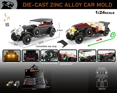 | YT24094135 | 英文1:24回力压铸锌合金灯光音效幻影一代老爷车 8只/展示盒 | 48
